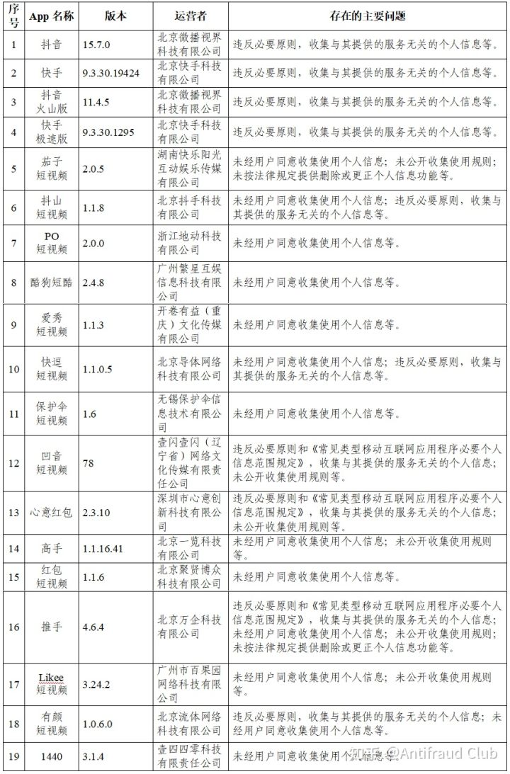 此次通报,涉及到的是短视频、浏览器、求职招聘等常见类型公众大量使用的部分App,具体情况如下: